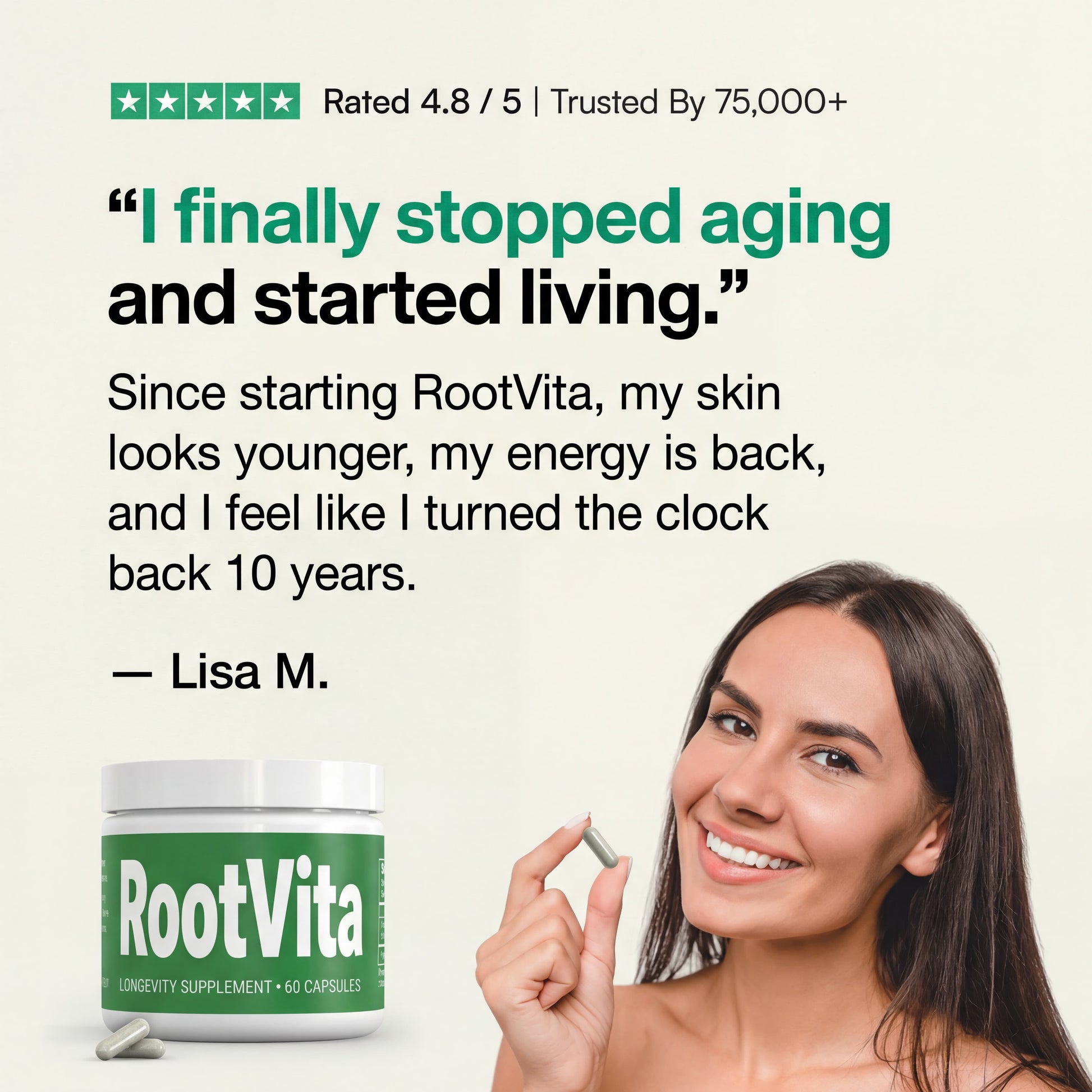 "I've been on RootVita for 3 months and the difference is real. My energy lasts all day, my recovery after workouts is night and day, and even my skin looks different. I've tried every longevity supplement out there — this is the only one I've actually felt."